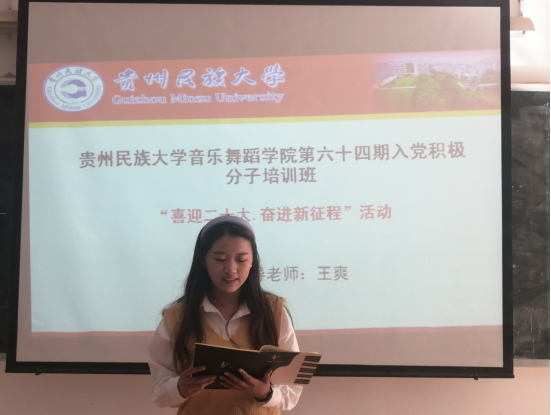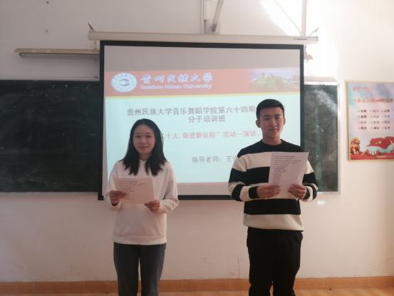 其次,第64期入党积极分子培训班的学员们就党的二十大报告中有关教育、文化等方面的内容展开充分讨论,并用演讲、朗诵的形式讲时代故事。学员们以内心真挚的感情和朴实的语言歌颂党,现场气氛非常的活跃。其中,陈寰同学朗诵了《红船,从南湖起航》,董佳洛同学作了题为《奋进新征程 喜迎党的二十大》的演讲,更是将现场的气氛推向高潮。