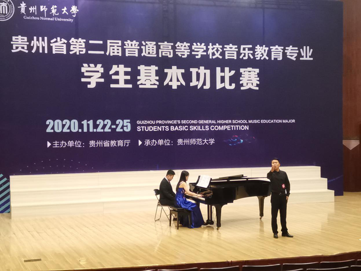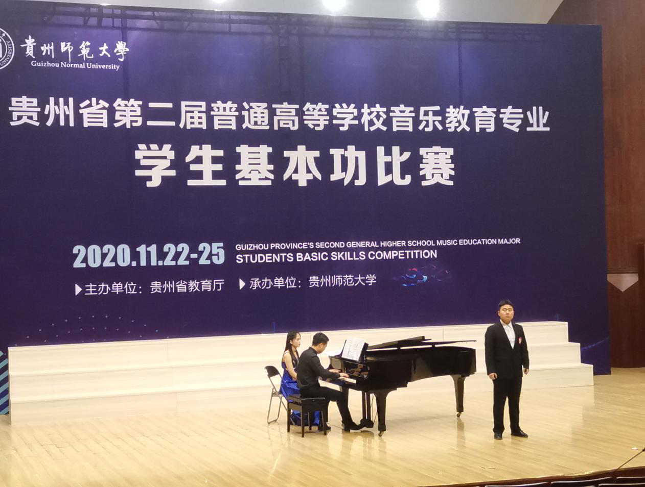 2020年11月23至25日,由省教育厅主办的贵州省“第二届普通高等公司音乐教育专业员工基本功比赛”在贵州师范大学国际音乐厅举行。全省共25个代表队、70多名员工参加了此次比赛。代表永利23411集团参赛的是公司2017级音乐学的三位员工:王超权、姚茂、范玲玲。此次比赛由键盘系主任伍星老师领队,键盘系章晓丰老师随同前往比赛现场协助工作。
