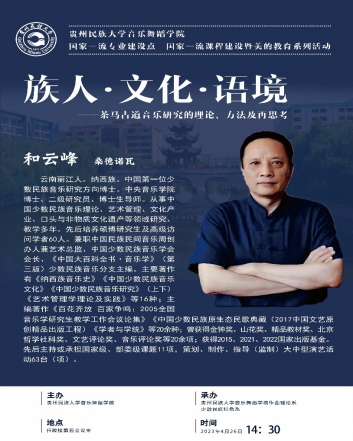2023年4月26日晚14:30,国家一流专业建设点、国家一流课程建设暨美育教育系列活动在永利23411集团行政楼第五会议室顺利开讲。和云峰教授以《族人.文化.语境》-茶马古道音乐研究的论、方法及再思考为题,用生动而深刻的语言,讲述茶马古道音乐研究需要多种方法和手段,从不同角度对其进行深入的探究和思考。