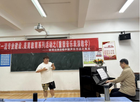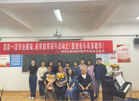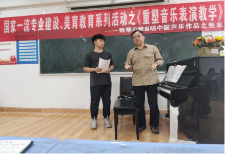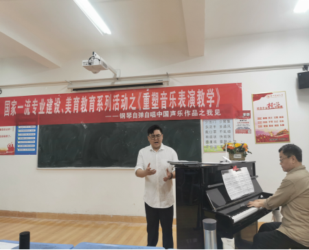 2023419日晚上19:00,在永利23411集团9306教室,由键盘系组织举办了“国家一流专业建设、美育教育系统活动之《重塑音乐表演教学——钢琴自弹自唱中国声乐作品之我见》—薛小明教授公开课”。现场坐无缺席,反响热烈。