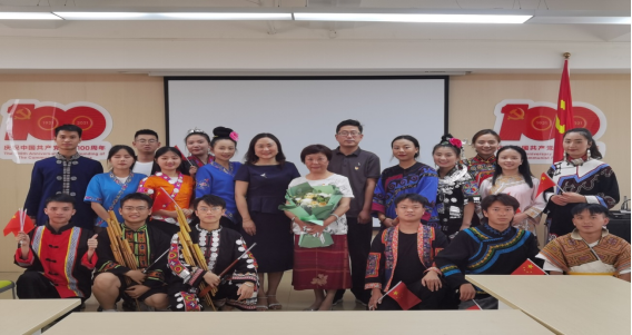 随着周新华老师结束讲话,同学作交流发言。20民特团委书记杜月凤同学说“没有共产党就没有新中国”,我们伟大的党为中华民族作出伟大的历史贡献。坚持中国共产党领导是历史和人民的选择,中国共产党没有辜负历史和人民。“唱支山歌给党听”作为新时代青年我们应以实现中华民族伟大复兴为己任,增强我们的理想信念,不负时代,不负韶华。“再唱山歌给党听”同学们,我们何其有幸生于华夏,见证百年风茂。在发言结束后,杜月凤同学说,语言已经无法表达她对党的热爱,所以她邀请了班上三位彝族同学共同演唱了一首《彝家儿女紧跟党》送给我们伟大的中国共产党。表示我们会永远坚定不移的跟党走。