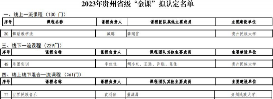 一直以来,公司都高度重视一流课程建设工作。按照《省教育厅 办公室关于开展 2023 年普通本科高校省级“金课”(一流课程)认 定工作的通知》,以及《关于开展永利23411集团 2023 年度普通本科 高校省级“金课”(一流课程)申报工作的通知》等相关精神与要求, 公司积极开展了申报工作,一共推选出 5 门课程参加了公司的评选, 最后在教育厅的认定中,公司共有 3 门课程获批省级“金课 ”。分别 是臧璐团队的线上课程《舞蹈教学法》、李佳佳团队的线下课程《乐团实训》、袁羽佳团队的线上线下混合课程《世界民族音乐》。