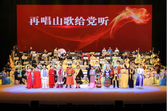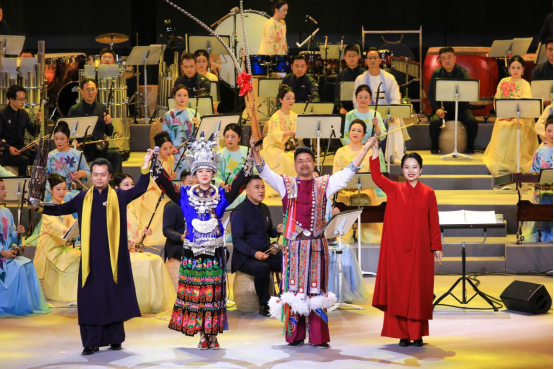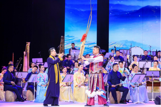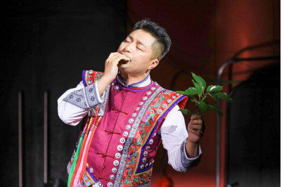 据悉,第六届全国少数民族文艺会演期间,超过1300万人次的观众通过国家民委网站和央视网观看了从全国各地推荐的101台剧目中遴选出来的42台,数以亿计的观众通过各类新媒体平台欣赏参演剧目的短视频。从1980年至今,经过41年的发展,全国少数民族文艺会演已成为增强中华文化认同、传承保护创新各民族优秀传统文化的重要平台,成为铸牢中华民族共同体意识、构筑中华民族共有精神家园的重要载体,成为促进各民族交往交流交融、推进中华民族共同体建设的重要途径。上海市参演剧目《共饮江河水 同聚中华情》,融合了新疆、西藏、内蒙古、云南、青海、贵州等地的民间音乐元素,不同的乐器流淌出的音符,合奏出各族人民对美好生活的赞美。由杨昌杰、赵臻、王静主演的乐曲《红土花开》,是作曲家王云飞新创的作品。以广为流传的贵州民歌《好花红》作为音乐素材,充满民族风情的旋律,结合贵州最具代表性的民族乐器芦笙,凸显多彩贵州的独特魅力。王云飞说:“情歌般优美旋律的铺展,律动性舞蹈场面的描绘,这都是人们美好幸福生活的写照。两件主奏乐器的融合与对话,配合最后赞歌式的乐队全奏,传递出对祖国大地的无限情深。”