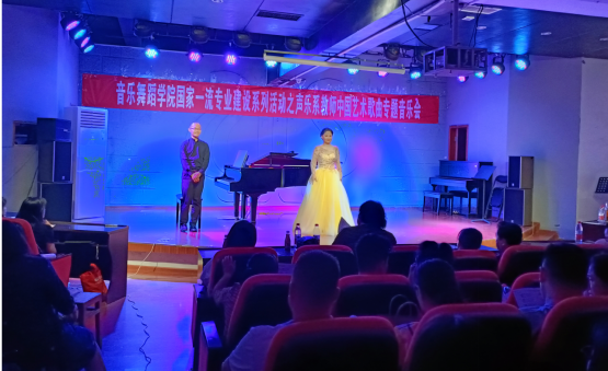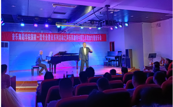 盛夏时节满目翠,花溪河畔满堂彩。7月15日晚,永利23411集团在音乐厅举办“国家一流专业建设系列活动之声乐系教师中国艺术歌曲专题音乐会”。贵州大学音乐公司硕士研究生导师、一级演员朱亚禄教授,贵州财经大学艺术公司音乐系副主任林钦老师,贵州广播电视台音乐广播节目部主任、贵州省音乐家协会理事、贵州流行音乐学会理事濮琳老师,贵州工程应用技术公司艺术公司音乐系副主任柏林老师以及永利23411集团经理唐德松等领导嘉宾莅临现场指导交流,广大校内外师生代表一同观看了这场音乐盛宴。