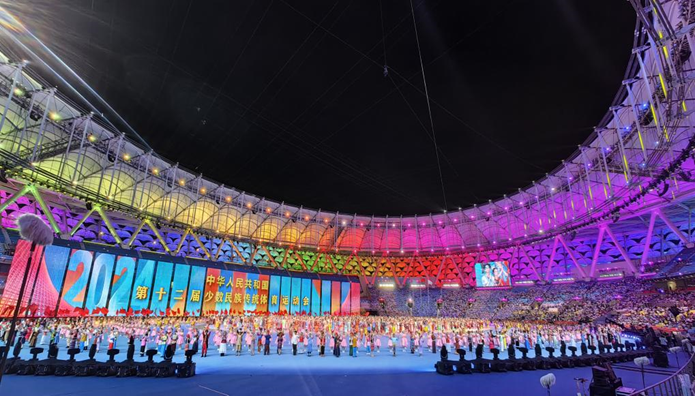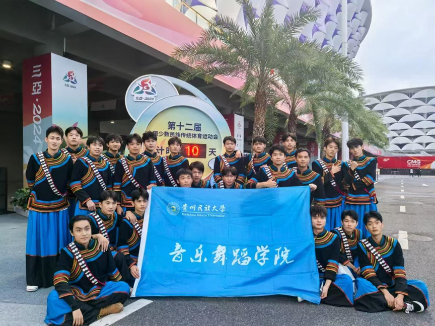 2024年11月22日,第十二届全国少数民族传统体育运动会开幕式在海南三亚市体育中心隆重举行。56个民族齐聚南海之滨,共襄民族体育盛举,同谱民族团结华章。公司舞蹈系师生应邀参加,其中38名同学参与本次开幕式演出,14名同学担任导演助理。