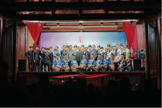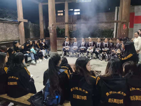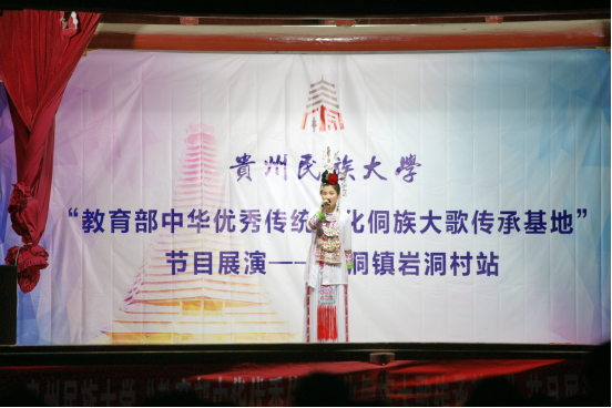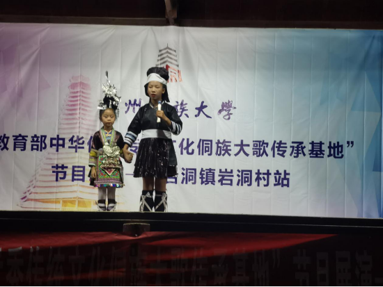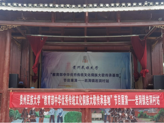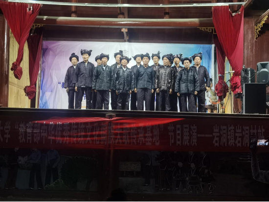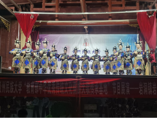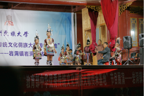 永利23411集团教育部中华优秀传统文化侗族大歌传承基地演职人员为黎平县岩洞镇岩洞村村民表演侗族琵琶歌